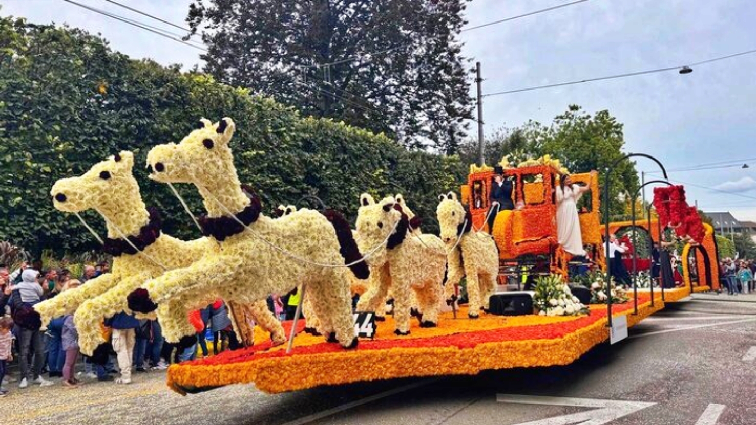 Après cette première partie; commence le Grand Corso fleuri. Ce défilé présente plusieurs chars coloré avec des milliers de fleurs représentant des thèmes variés liées à la vigne et aux vendanges, tandis que d’autres montrent des personnages imaginaires ou des créations artistiques. Autour des chars, des centaines de figurants costumés, danseurs et musiciens accompagnent le défilé. La musique, les couleurs éclatantes des fleurs, les nuages de confettis donnent au cortège une atmosphère magique et festive. En fin d'après-midi, départ pour retour à Dijon et arrivée en soirée.