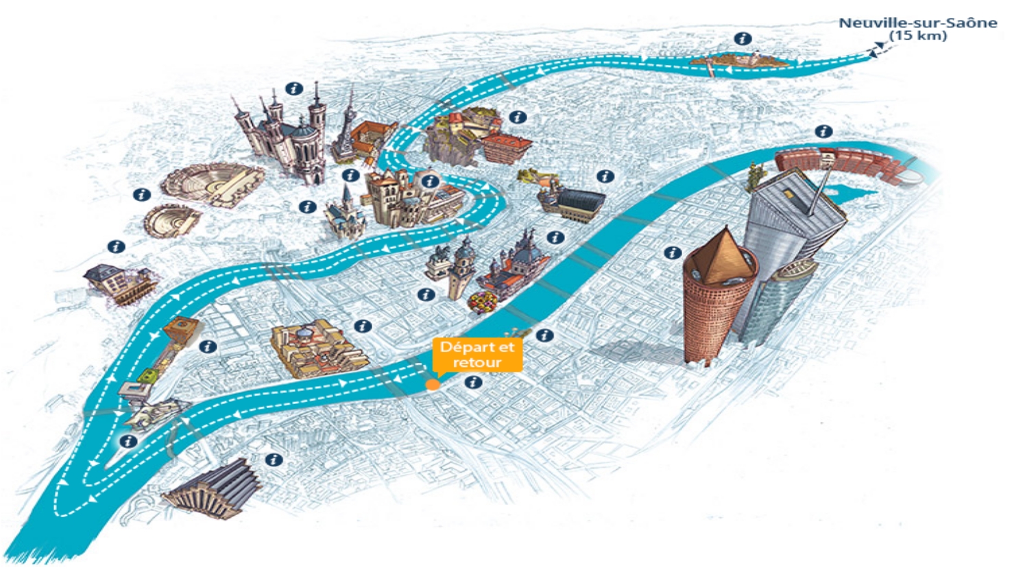 Départ de Dijon en direction de Lyon et embarquement pour une croisière-déjeuner gourmande au fil de l'eau (durée 5h30). Larguez les amarres et parcourez les œuvres des rives de Saône ! L’occasion idéale pour admirez l’architecture des Quais du Rhône, le Quartier de la Confluence, le Vieux Lyon, l’Ile Barbe, les Monts d’Or... Avec un passage d'écluse à Couzon-au-Mont-d’Or et une escale (env 45 mn) à Neuville-sur-Saône, afin de découvrir cette charmante ville en bord de rivière. Menu avec apéritif, entrée/plat/fromage blanc/dessert, 1/4 vin, eau et café. Retour à Lyon en fin d'après-midi, départ pour retour à Dijon et arrivée en soirée.